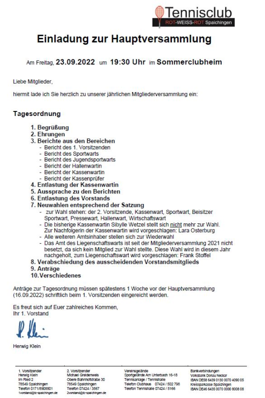 TC Spaichingen zieht positive Bilanz und plant Beitragserhöhung