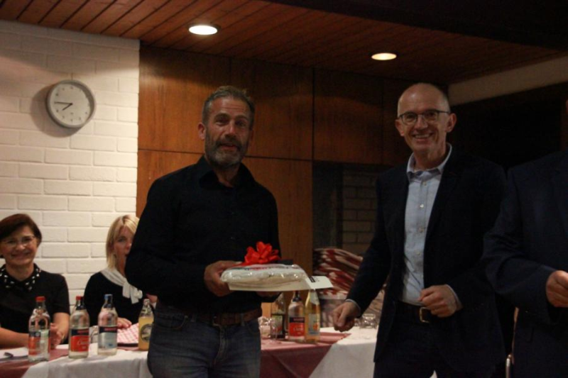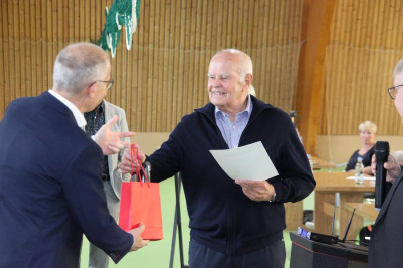 Der bsiherige Liegenschaftwart wurde für seine Jahrelange Arbeit mit einem Präsentkorb geehrt und verabschiedet.