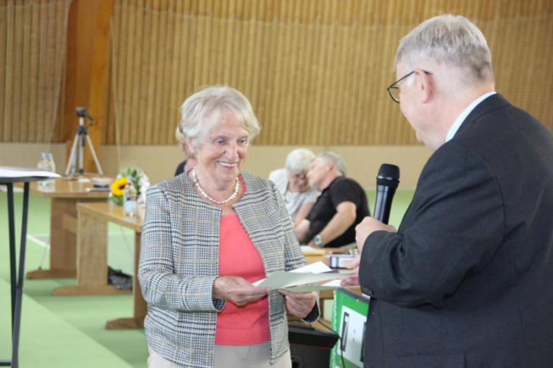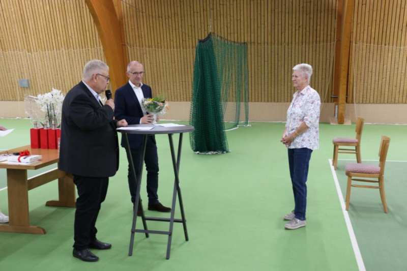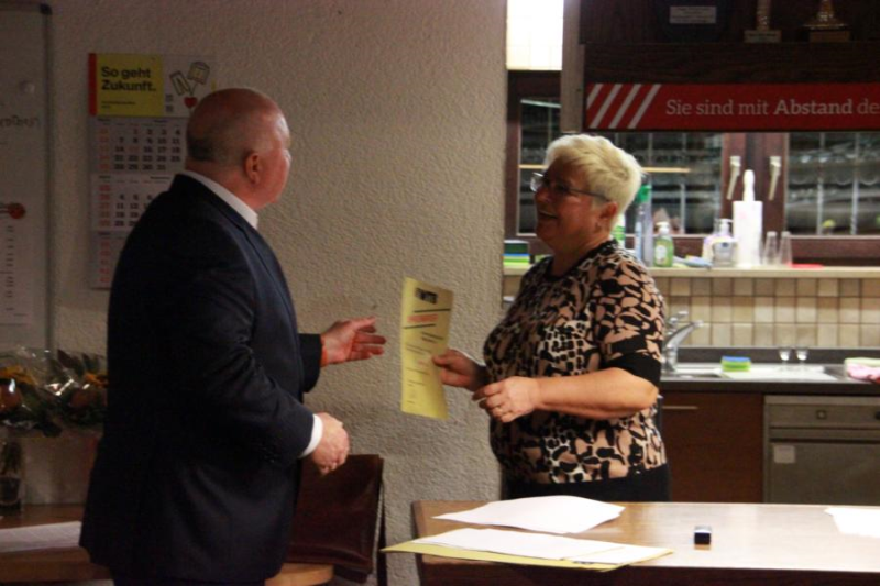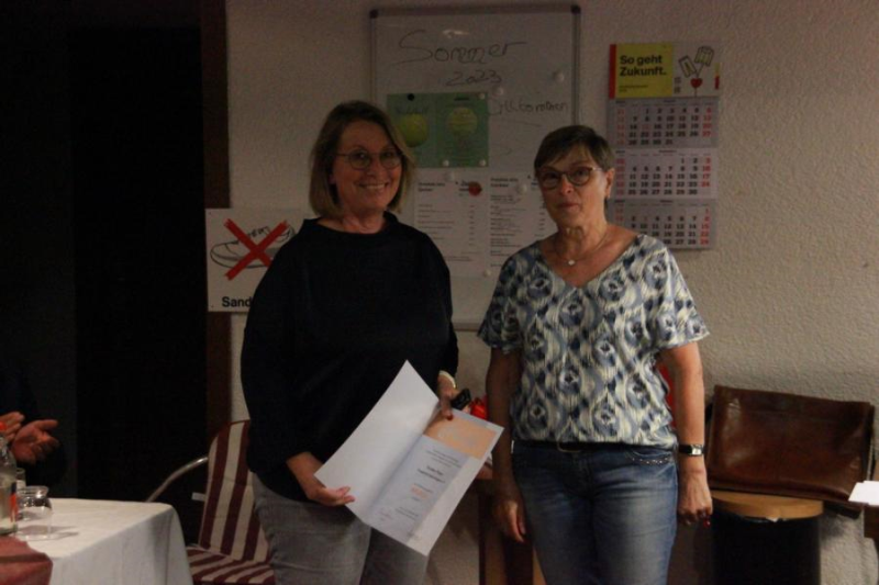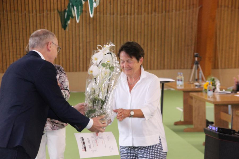 Die bisherige Kassenwartin Sybille Wetzel wurde für ihre jahrelange Arbeit mit einem Blumenstrauß geehrt und verabschiedet.