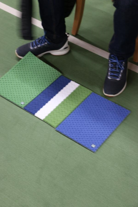 Bitte, die Sandplatzschuhe vor der Halle auszuziehen, um die Sauberkeit zu wahren.