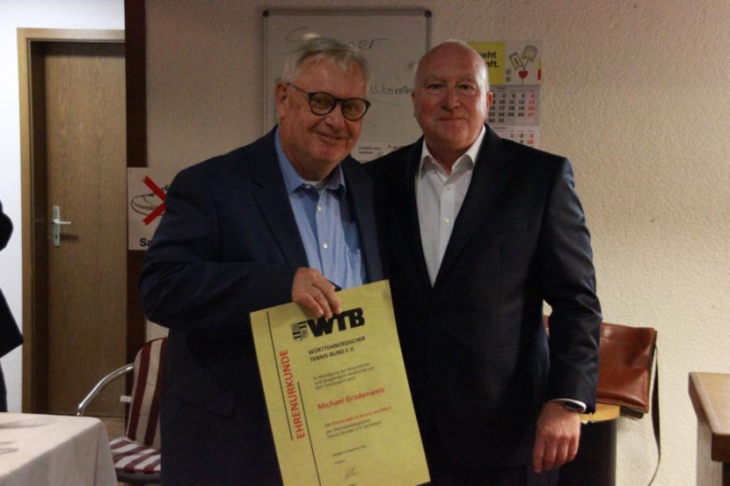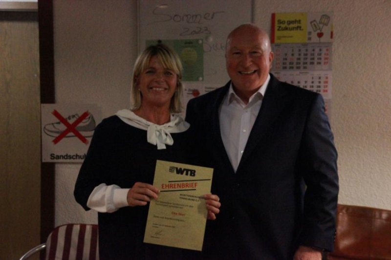 Zusätzlich erhielten einige Vorstandsmitglieder Ehrungen des Württembergischen Tennis-Bundes (WTB) und des Württembergischen Landessportbunds (WLSB) für ihre langjährige Vereinsarbeit. Diese Ehrungen wurden vom Bezirksvorsitzenden des WTB, Stefan Linke, und von Claudia Betting-Staiger, der stellvertretenden Sportkreisvorsitzenden des WLSB, durchgeführt.